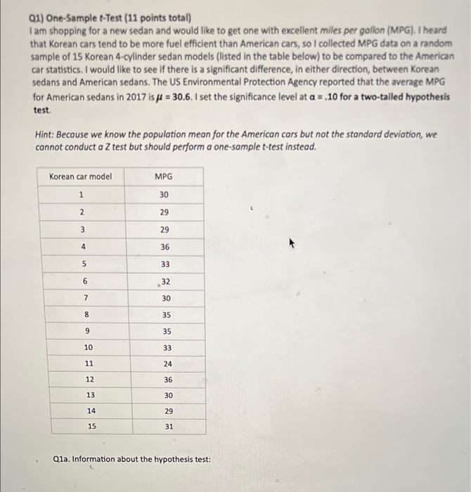 Solved 01 One Sample T Test 11 Points Total I Am Shopping Chegg Com